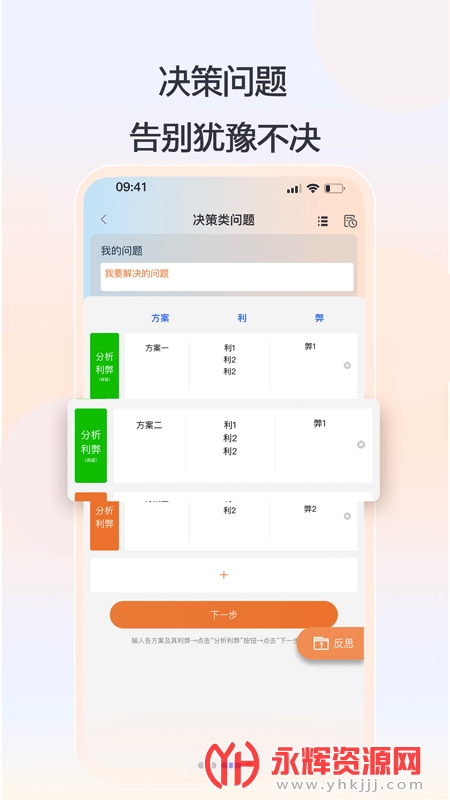 3、针对“选什么”的问题,致力于帮助您更全面地分析方案的利弊,在管理、讨论、下决定等场景可以广泛使用。