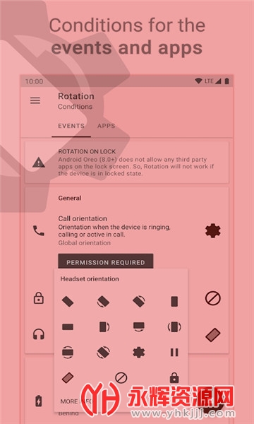 4、具有不同事件和应用支持的条件。呼叫方向、锁定方向、耳机方向、充电方向、底座方向、应用方向