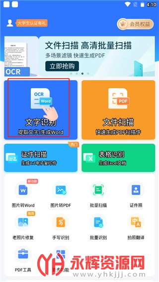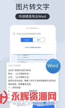 2、简单的操作方式,丰富多样的功能应用,你可以轻松进行图片转文字,精准导出Word,文档高清扫描,文件快速生成PDF,还能扫描证件,1:1还原,表格识别,一键生成Excel,快来试试看吧