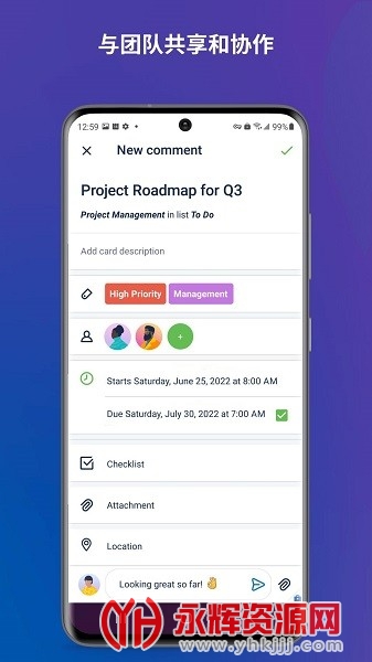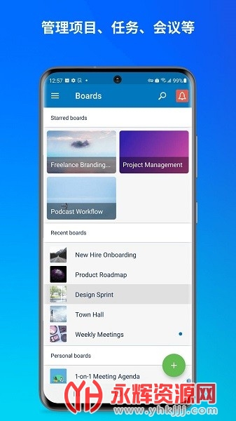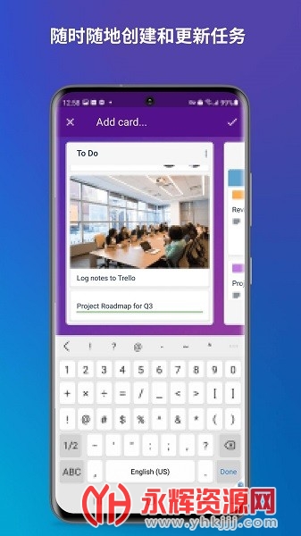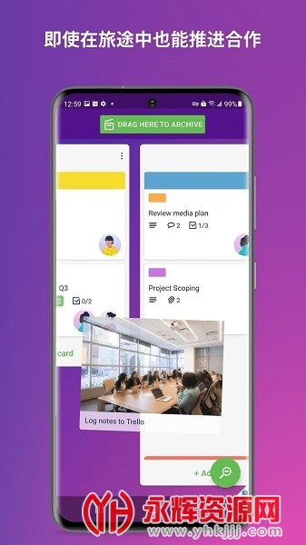 无论你身在何处,为了保持井井有条,请打开通知并在分配、更新和完成卡片后随时了解情况。