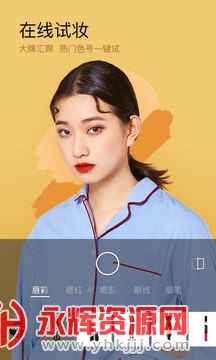 做你的专属素颜自拍神器,实时预览上妆效果,随心切换!强大的人脸识别技术,让妆容完美贴合面部表情~你今天的衣服真好看,来搭个妆容吧!