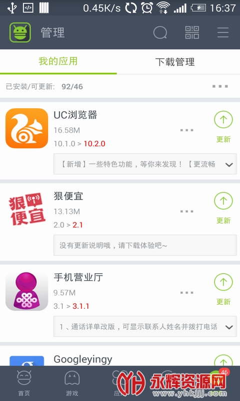 只需一键即可从下载资源,并支持 一键更新已安装的应用,快速装机一步到位