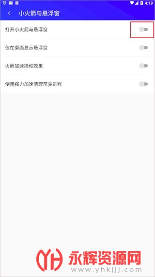 3、在打开小火箭与悬浮窗的后面点击关闭即可;