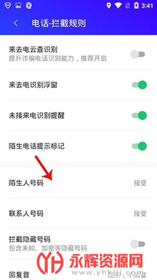 5、选着陌生人号码,即可拦截陌生人的电话。
