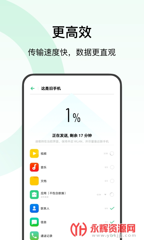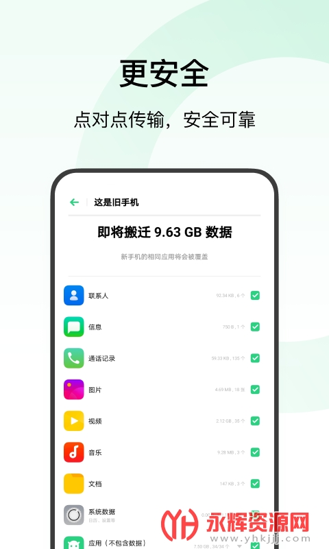 【核心数据全迁移】支持迁移链接,短信,照片,视频,音乐,文档,已安装的应用等多个数据