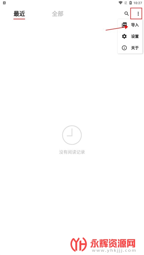 1、首先进入yes pdf官方版,点击上方三点,然后点击导入;