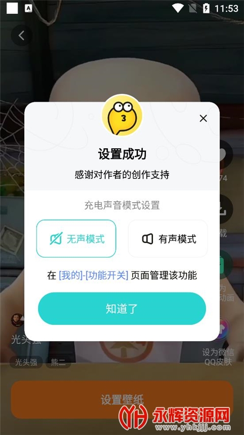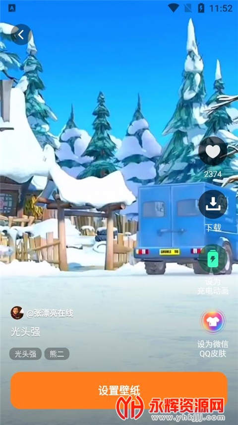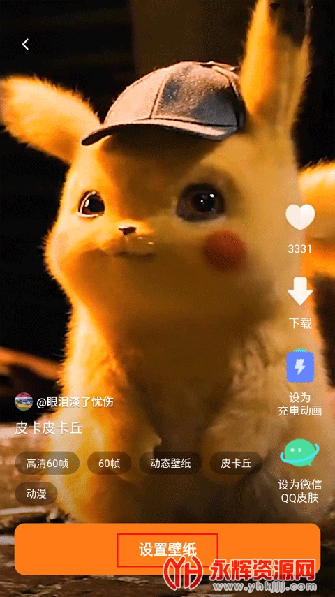 2、选择好后进入到壁纸详情页面上,你可以将这个壁纸设置成充电动画,也可以设置为微信QQ皮肤,点击下方的“设置壁纸”。