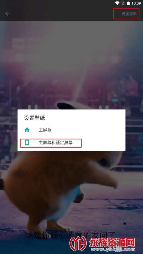 3、进入到设置界面时,点击右上角的“设置壁纸”按钮,页面上弹出了两个选项:主屏幕、主屏幕和锁定屏幕,点击下方的选项。