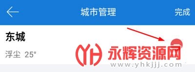 2、进入城市管理页面,点击右上角的【编辑】,然后所有城市都会弹出红色删除图标,点击即可删除城市,当然了无法将城市全部删光,至少保留一个城市。