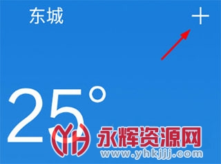 1、离开了某个城市就不再关注这个城市的天气,那么请前往天气页面,点击右上角的【+】号。