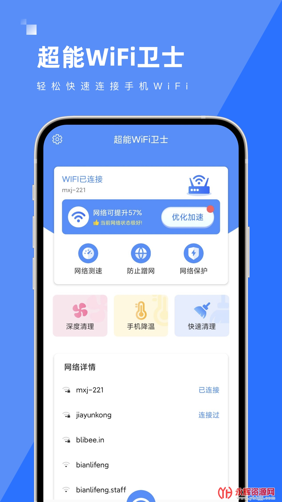 超能WiFi卫士是一款免费的WiFi共享软件,能够自动扫描可用的WiFi网络,并优化网络延迟和带宽分配,保障网络使用体验。还可以防止欺骗和其他安全威胁,提供安全保护。该软件具有高效、精准的特点,能够记录WiFi高速并帮助用户保持高速上网。