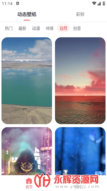 2、收藏热门超清动态壁纸,提供风景、情侣、城市等多种类别,只为给你更多选择,资源丰富。