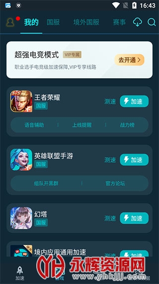 1、支持分富游戏资源实现对国内外手游加速;