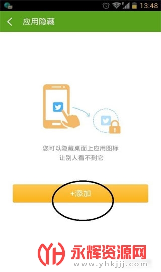 点击【添加】。选择你想要隐藏的应用,避免让别人看到。比如,我选择了号簿管家。然后点击【确定】。这样就成功隐藏了号簿管家应用。