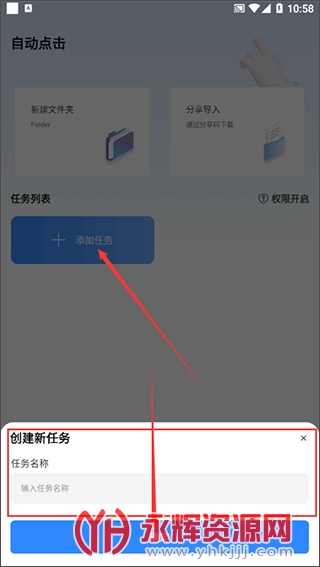 1、打开自动按键点击app,进入软件后授予软件运行所必需的权限,在首页的“任务列表”下点击“添加任务”,输入任务名称,点击确定即可进行下一步;