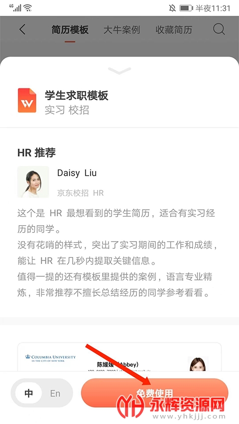 4、大学生(在校生或者毕业生)提供专属的求职招聘模板,不管是留学、实习、找工作都有针对性的引导和简历案例,让你的简历更充实更有竞争力。