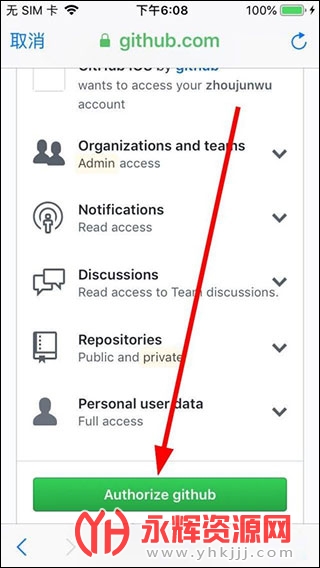4、授权Github App能访问内容的权限,根据需选择不同的权限,通常可以默认然后点击“Authorize Github”