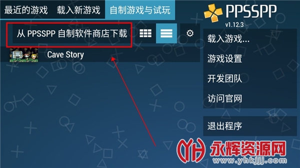 1、下载并进入手机psp模拟器最新版,点击自制游戏与试玩;