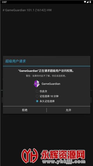 2、授予GameGuardian超级用户访问权限,选择允许即可。