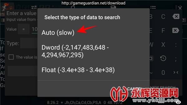 7、或者可以选择Auto 让GG 修改器自己搜寻游戏内可以修改的参数。