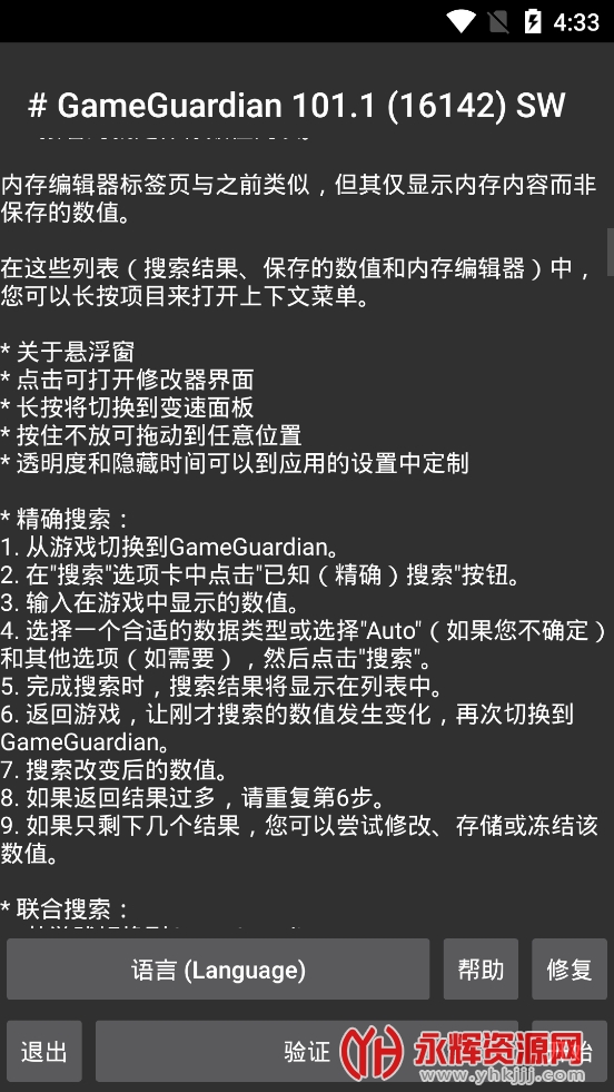 1.在游戏中点击Guardian图标 2.点击“搜索”选项卡 3.点击“搜索”按钮进行搜索属性值 4.按“返回”键继续你的游戏 5.重复1? 3步骤,直到找到确切的地址 6.点击地址,并将其保存 7.点击清除按钮,以搜索游戏中下一个属性值