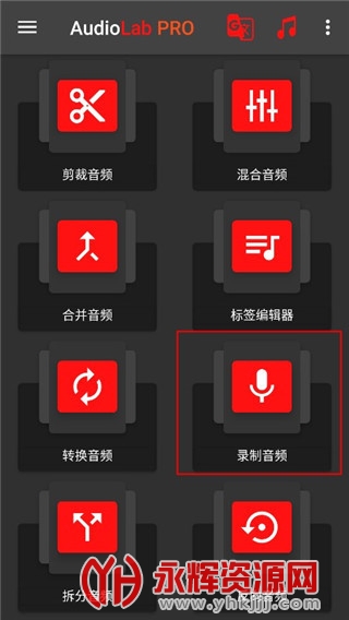 1、打开在本站下载的audiolab中文版,进入软件首页,选择“录制音频”;
