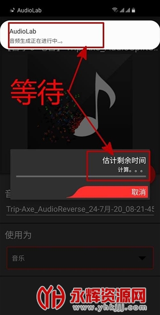1、裁剪:在这里对于音乐的资源进行一个简单的裁剪,留下自己需要的资源。