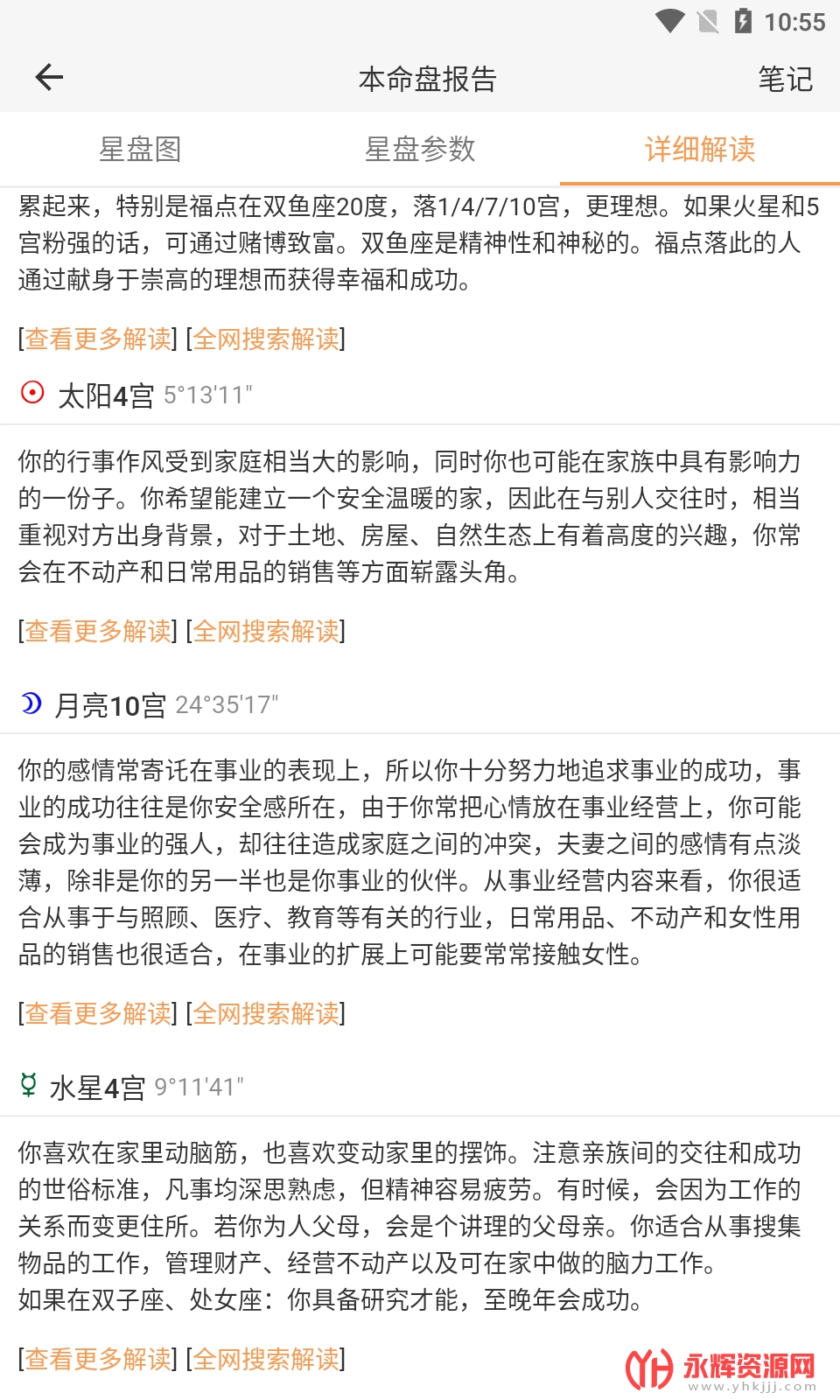 6、集成全面丰富的星盘解读数据,提供众多解读教程。