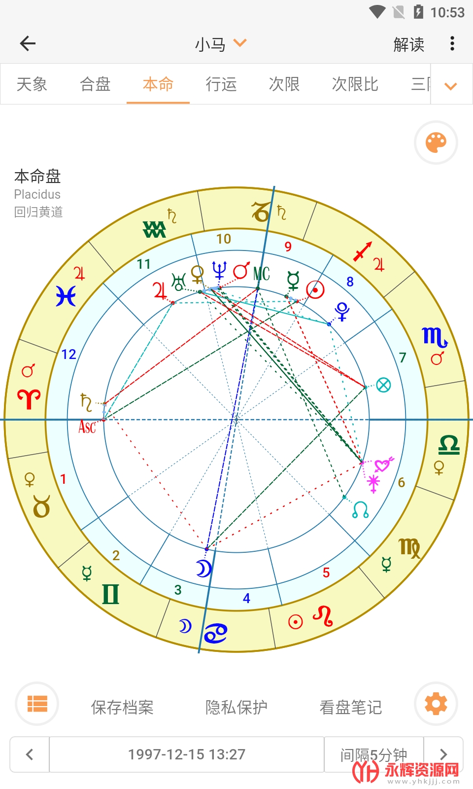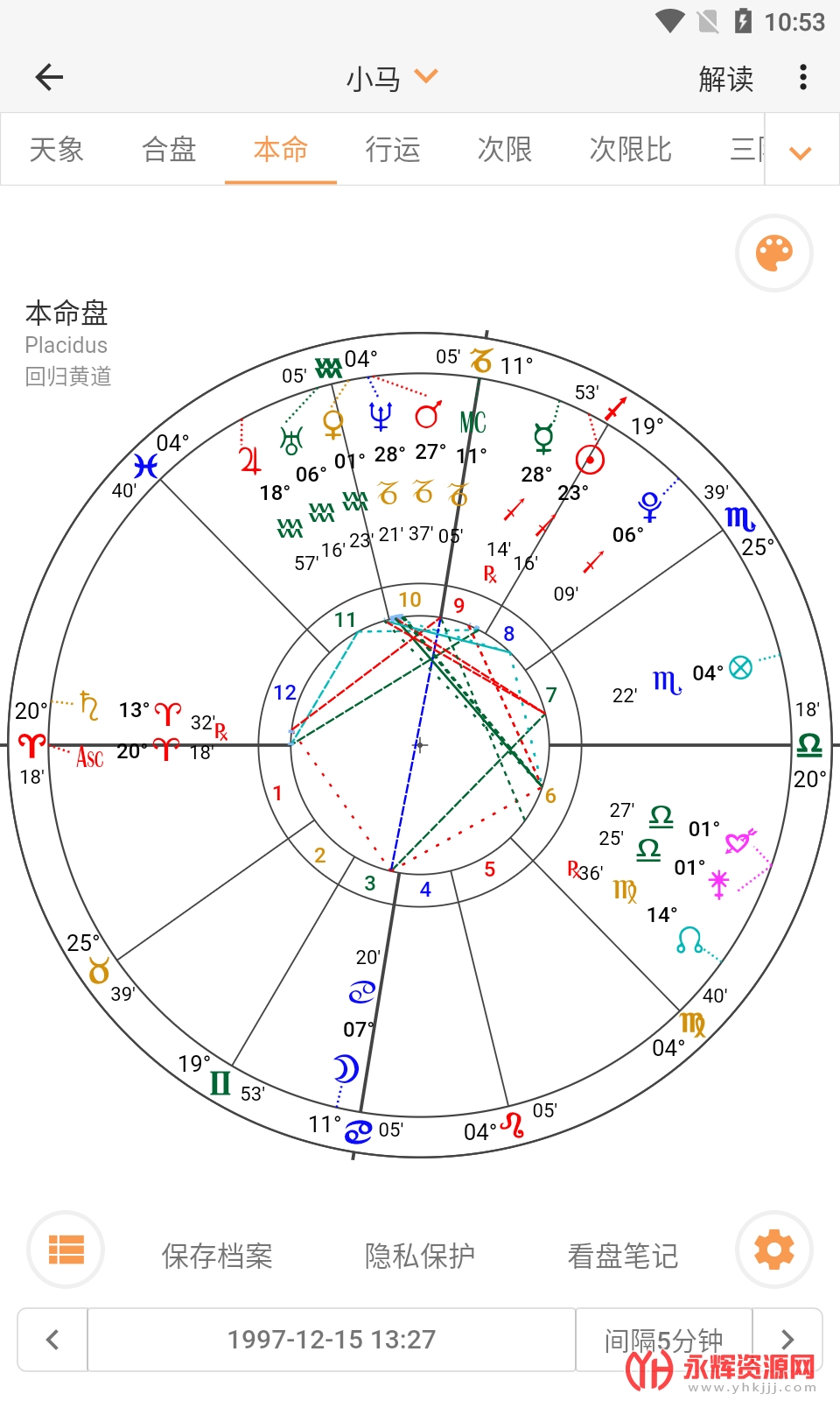 3、全面的星盘类型支持,包括本命盘、合盘(比较盘、配对盘、组合中点盘、时空中点盘、马克思盘)、推运盘(行运盘、次限盘、推进盘、三限盘、太阳返照盘、月亮返照盘、太阳弧盘、法达星限),基本囊括你所了解到的全部星盘类型。