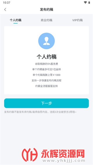 个人约稿:全面免除一切手续费,并由平台帮个人与画师承担税费;