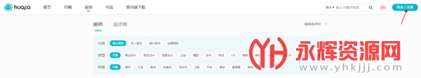 1、进入画加的官网,选择画师,点击右上角的注册进行注册。