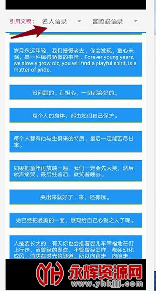 6、点击主页的分号按钮,可以加入更多名言名句。