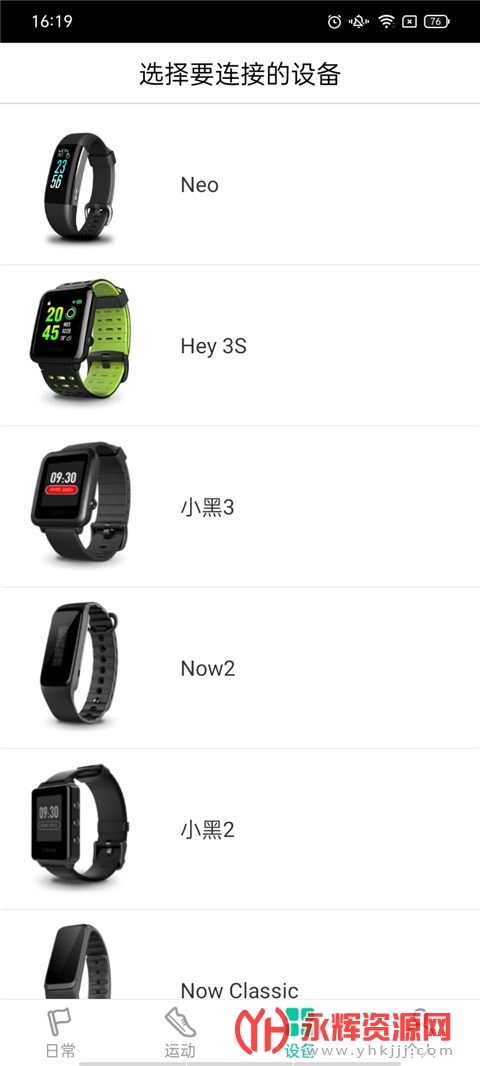 2、成功设置完成后,我们就可以选择你需要连接的设备,这就需要查看你的手环设备是以下产品了;