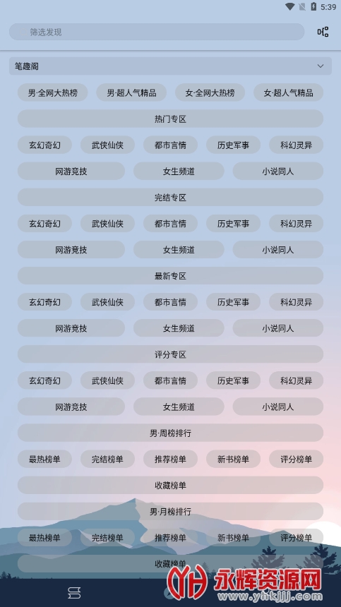1、简单的软件界面,以及非常清晰的小说分类,用户可以快速找到书籍。