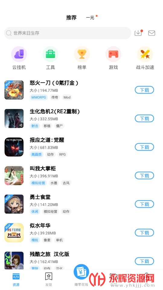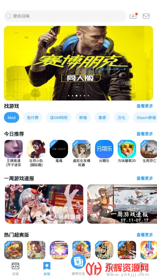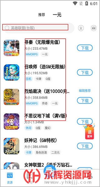 3、在资源这里可以看到有各种游戏的福利版本;