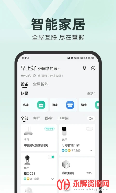 致力于打造智能数字家庭统一入口,让用户享受美好的智慧生活体验。在智能家庭网关配套软件基础上实现网络管理、智能设备管理及业务办理功能,引入智能家居业务,并基于家庭统一账户整合家庭通信与流量,提供一站式数字家庭服务。是中国移动在数字家庭领域的主打产品。