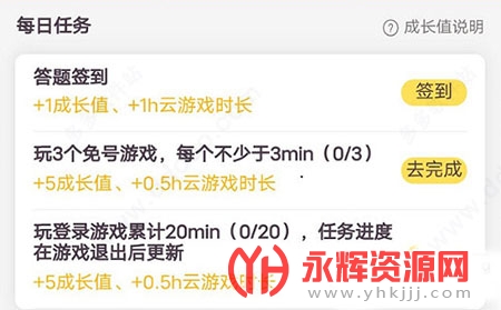 1、每日任务:游戏里面可以通过每日签到以及试玩游戏的方式获得相应的时间,在里面通过连续签到还可以获得额外的时间增加;
