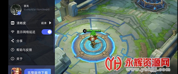 3、点击进入就会在屏幕边缘看到一个悬浮按钮,这里一般都是设置云游戏画质以及其他查看项的地方