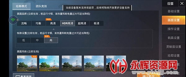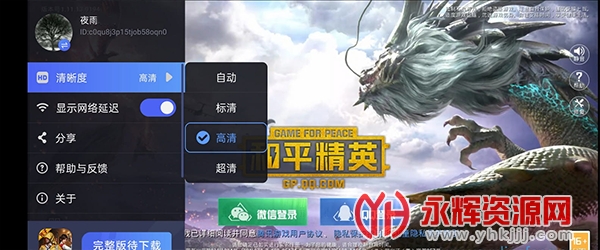 6、下面体验下和平精英的云游戏版本,因为都是腾讯先游早前内测的云游戏,因此二者的操作界面都差不多,就包括那个悬浮按钮里面的画质调节均是一模一样的