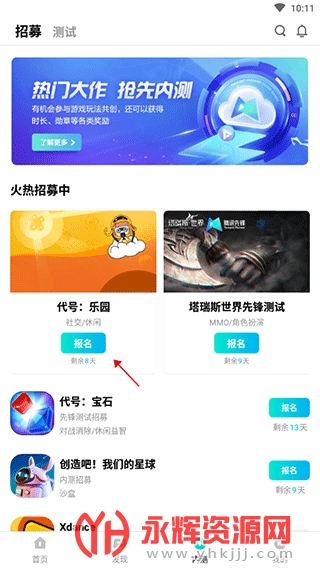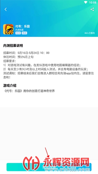 1、进入腾讯内测手游app,选择你要参与的内测手游,这里我们选择"代号:乐园"手游,点击报名;