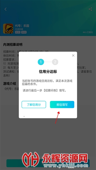 4、确认已绑定的手机号,满足游戏招募的条件(信用分达标),最后点击确认提供招募问卷等信息;