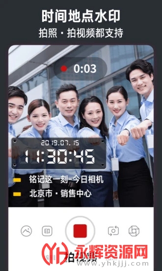 1、丰富的记录水印库。拍照时,智能添加时间、地点、经纬度水印、婴儿出生计数等样式,精准记录生活。