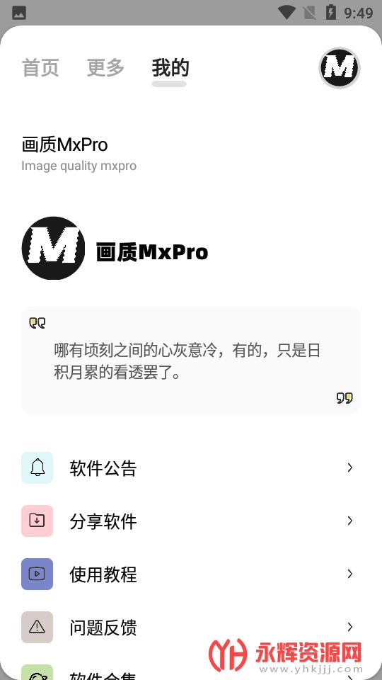1、界面干净清爽没有广告的一款免费的手机画质软件。