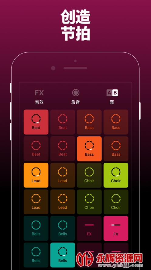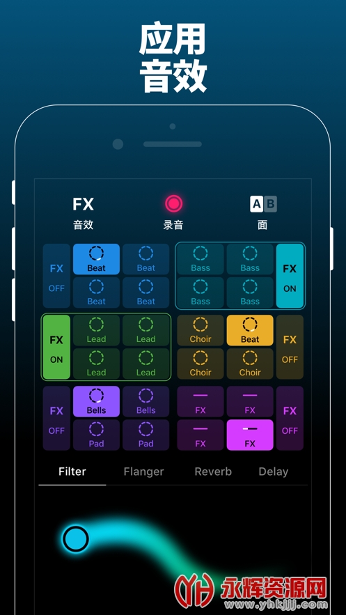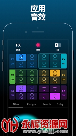 - 利用滤波器、飘忽效果器、混响和延迟等一些令人惊艳的特殊音效,你可以通过鼓垫应用中的音乐重燃派对