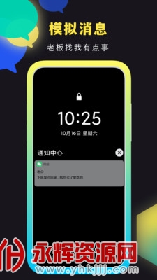 4、模拟消息提醒:支持多种应用设置消息提醒。假装领导让你回去加班。你父母让你回家吃饭然后逃跑。