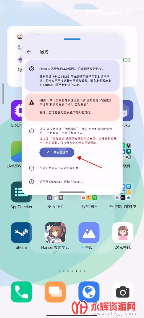 3、打开Shizuku软件点击配对选项然后点击开发者选项。