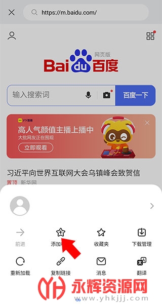 2、之后点击添加收藏选项。