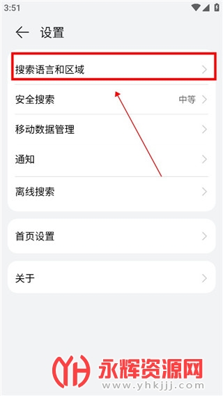 3、在设置中选择【搜索语言和区域】。