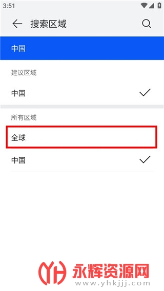 5、在这里将搜索区域修改为【全球】即可。