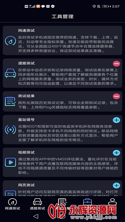 泰尔网测是一款由中国信息通信研究院官方制作推出的移动端专业网络测速工具软件。这款软件为用户提供了全面的移动连接质量测量服务功能,还提供了十分炫酷、无广告的用户界面以及交互式地图,从而可以为用户带来最佳的用户体验。此外,泰尔网测app不但提供了基础的网速测试功能,还集成了道路测试、网页浏览、流媒体播放等功能,所有提供的服务器都是国内节点,并能看到每一个服务器与你的距离。如果您喜欢的话,欢迎您来永辉资源网下载体验!